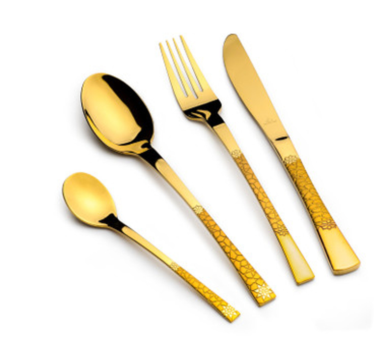 - تتضمن: 12 شوكة عشاء، 12 سكين عشاء، 12 ملعقة عشاء، 12 ملعقة صغيرة