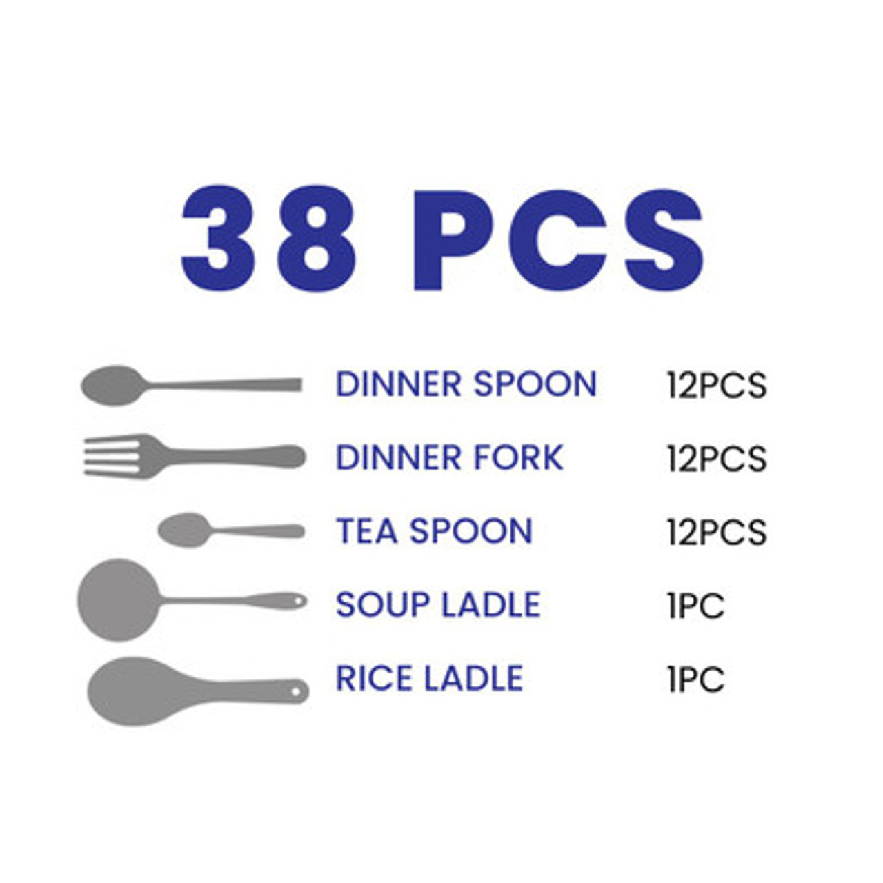- مجموعة شاملة: تتضمن 6 ملاعق عشاء، 6 شوك عشاء، 6 سكاكين فاكهة، 6 ملاعق صغيرة، 6 شوكة حلوى، 6 ملاعق آيس كريم، ملعقة أرز واحدة، ومغرفة حساء واحدة، لتلبية احتياجات العشاء الحميم والتجمعات الكبيرة