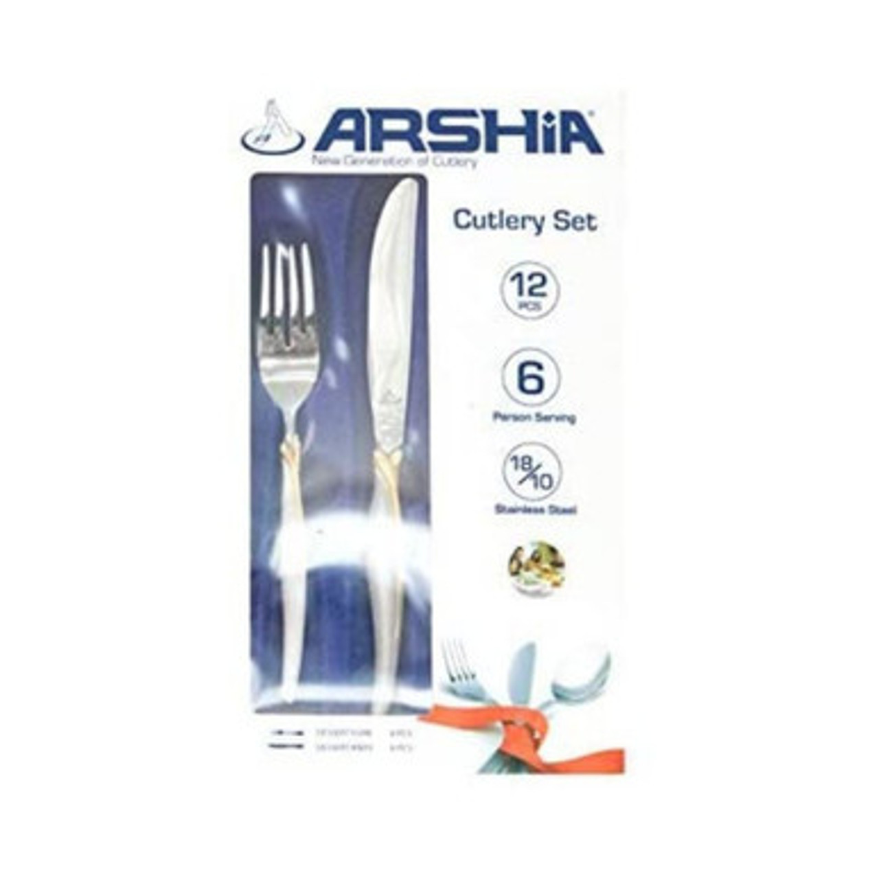 طقم أدوات مائدة شوكة وسكين فاكهة من أرشيا، 12 قطعة، فضي