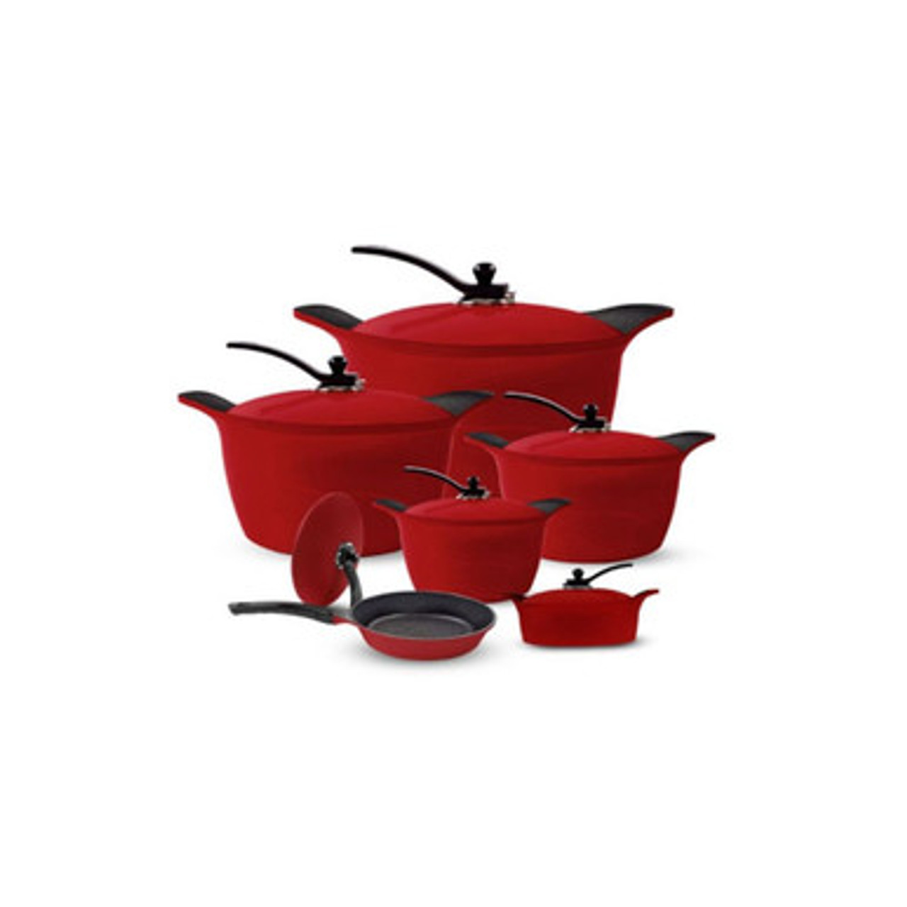 طقم أواني طهي أرشيا مطلي بالجرانيت، 12 قطعة، أحمر