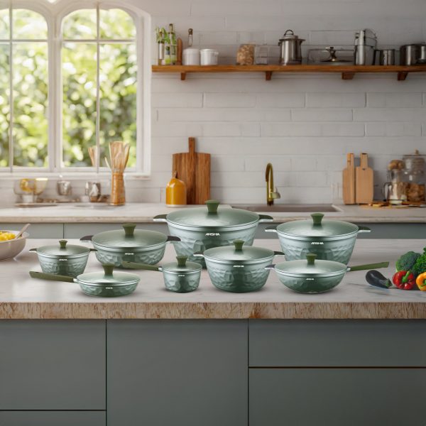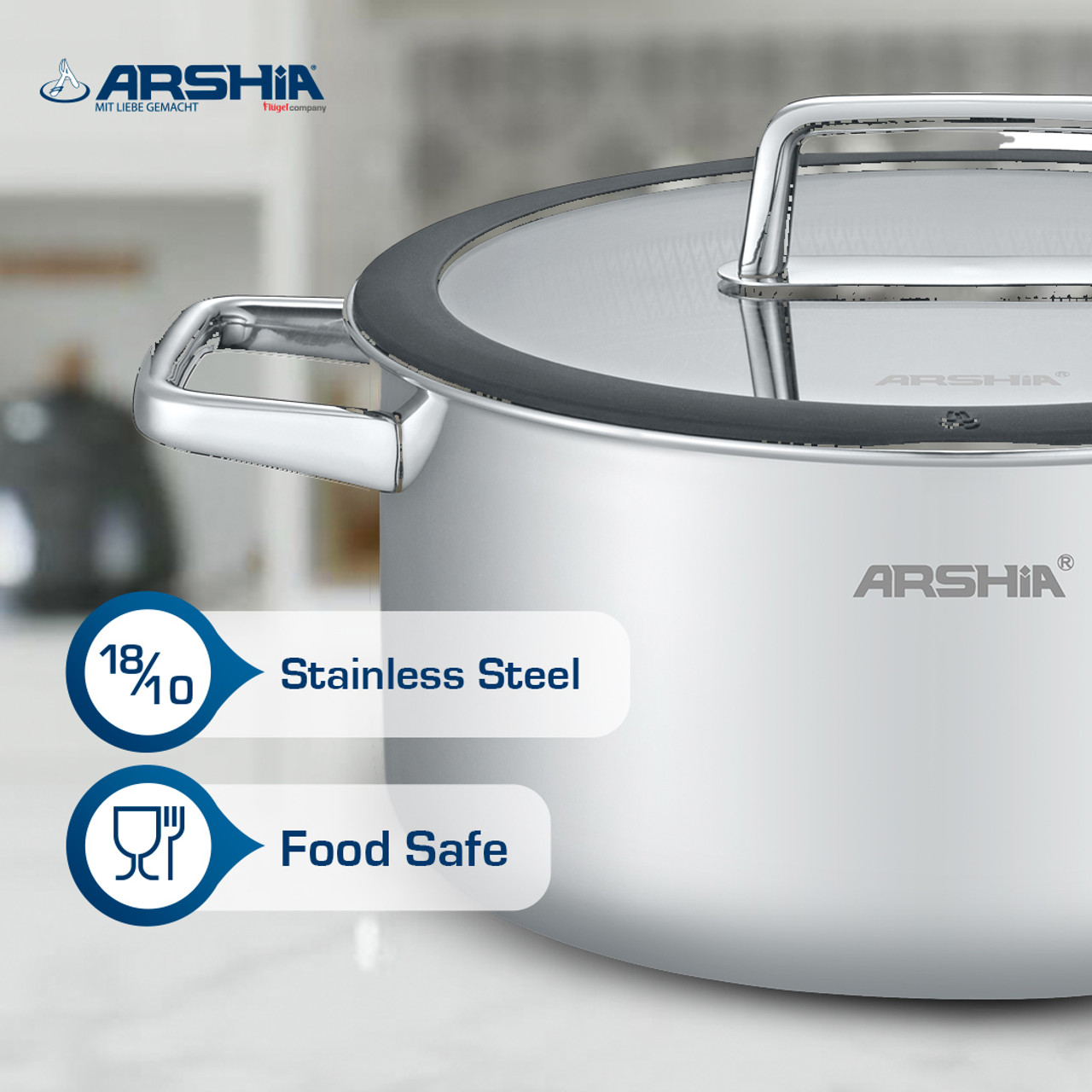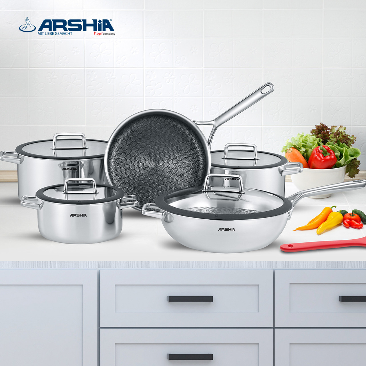 طقم أواني طهي أرشيا من الفولاذ المقاوم للصدأ مكون من 10 قطع