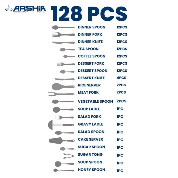 تجمع هذه المجموعة الرائعة بين الجمال الخالد والرقي العصري. تتميز كل قطعة بلمسة نهائية ثنائية اللون، وهي مصنوعة بعناية فائقة من الفولاذ المقاوم للصدأ عالي الجودة لضمان المتانة والأناقة، مما يجعلها مثالية لإضفاء لمسة جمالية على أي طاولة.