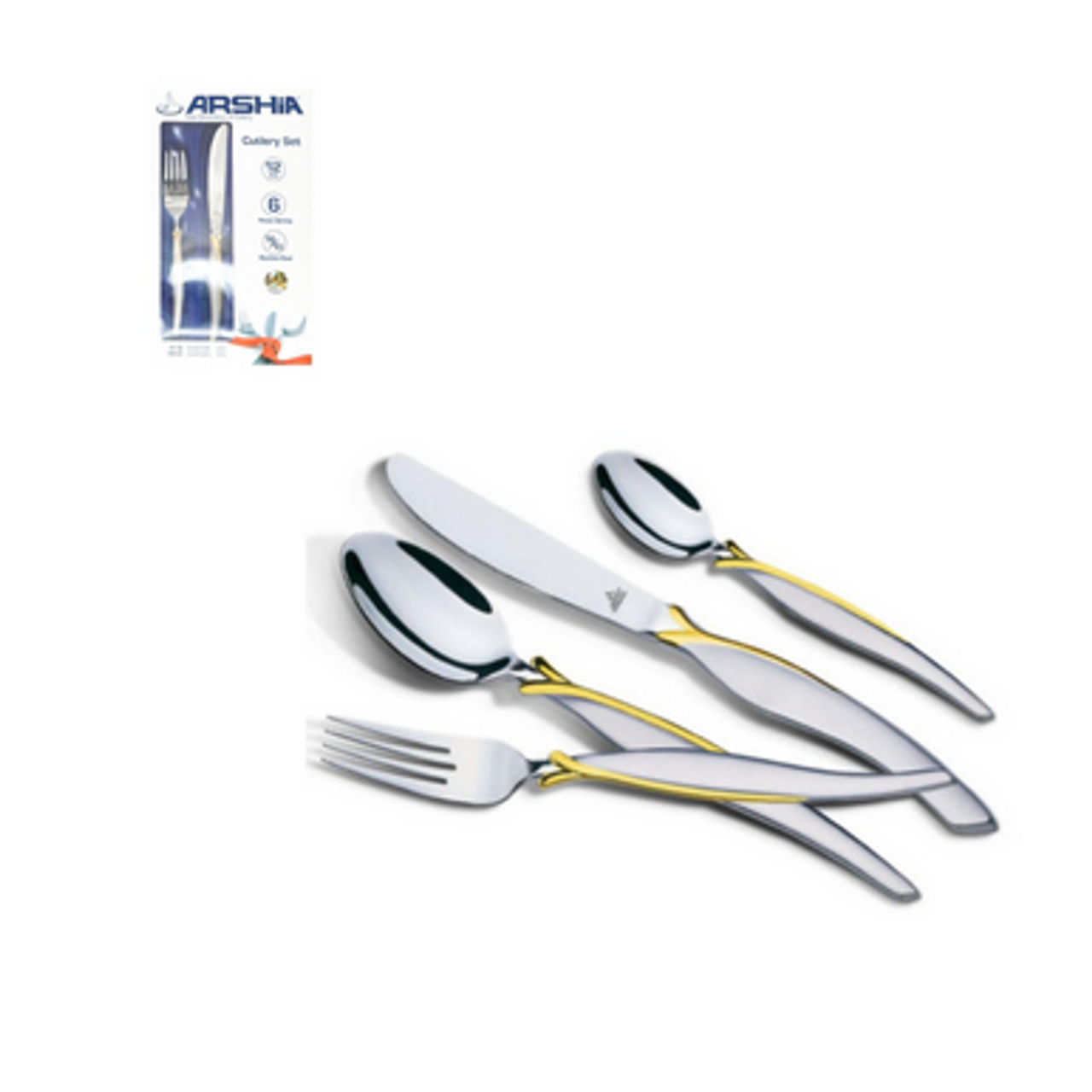 طقم سكاكين وشوك الحلويات من أرشيا، 12 قطعة، ذهبي وفضي