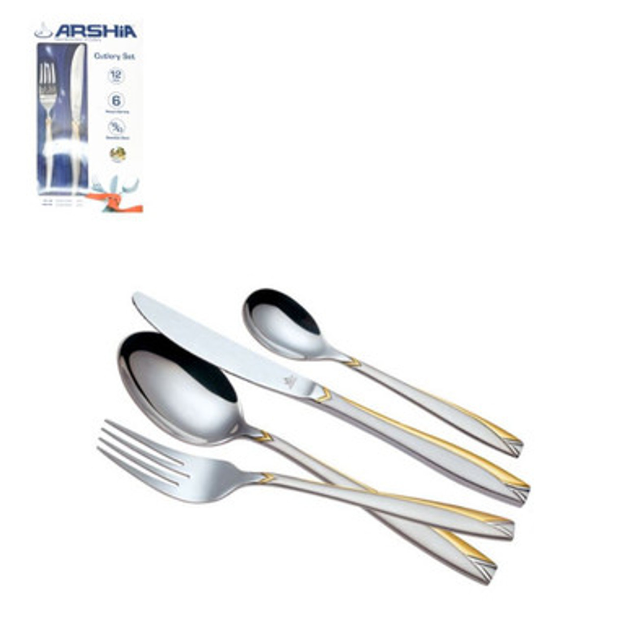 طقم سكاكين وشوك عشاء من أرشيا ذهبي وفضي، 12 قطعة
