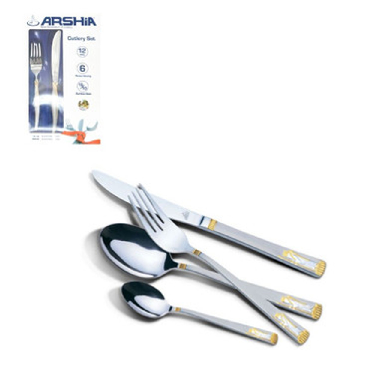 طقم سكين وشوكة فاكهة من أرشيا، 12 قطعة، ذهبي وفضي